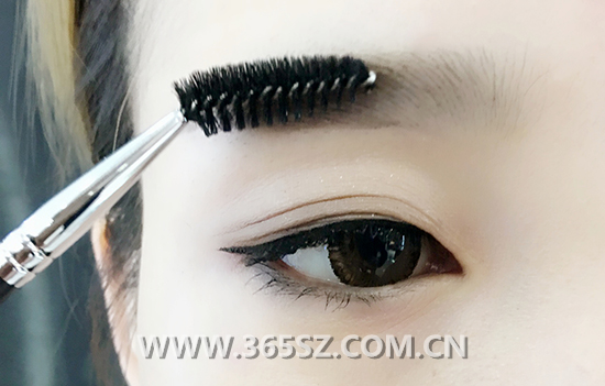 1.用眉刷梳理眉毛,顺着一个方向慢慢梳